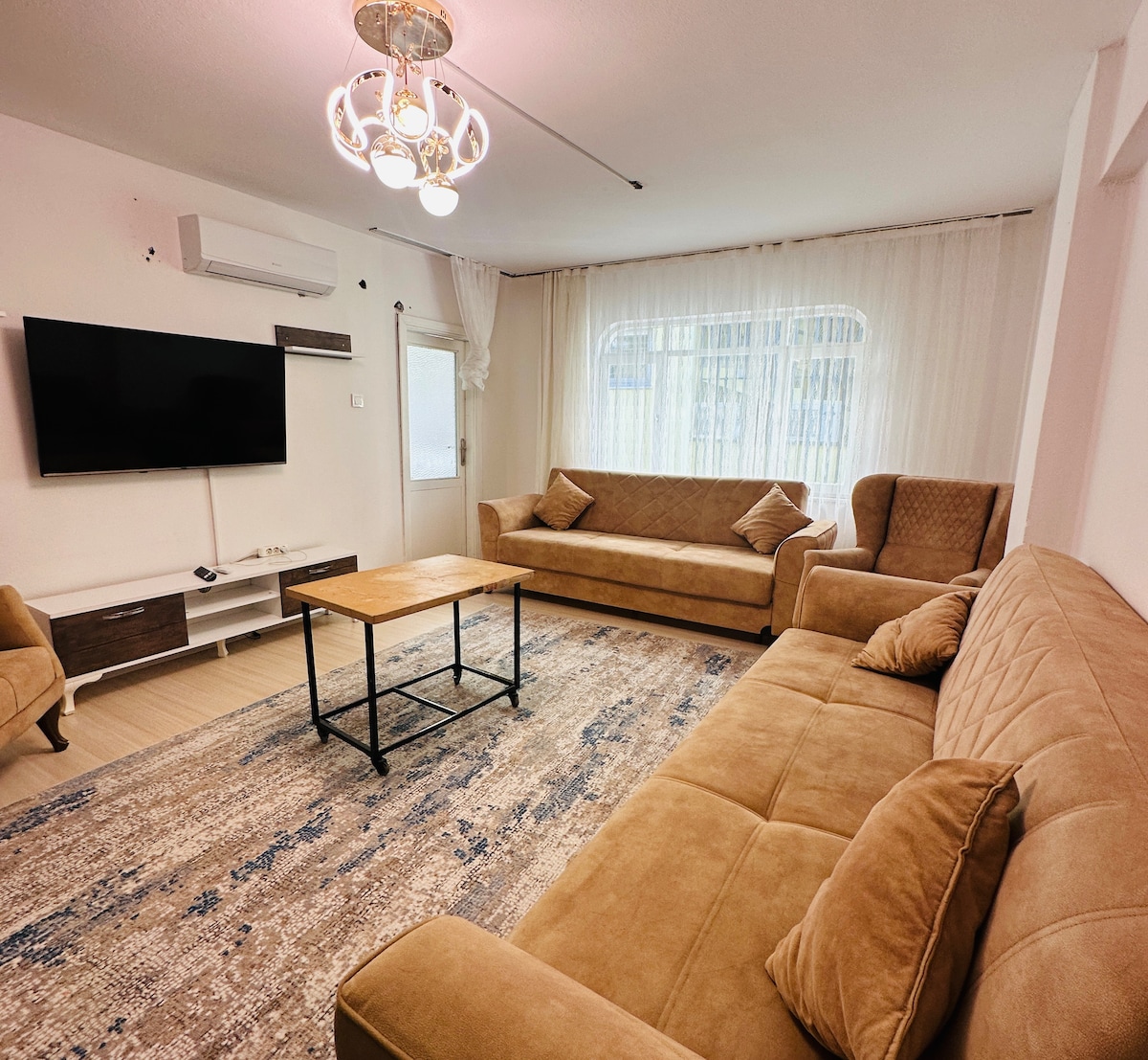 Doar 4 km până în centru. Întâlnește natura în timpul iernii în această vilă sigură printre pini. Bucură-te de un grătar în grădina ta privată. Toate camerele din casa noastră de la parter 1+1 sunt dotate cu aer condiționat. Nu există probleme de încălzire. Confortul tău este asigurat cu o saltea din viscoză în dormitor și 2 canapele extensibile în living. Siguranța ta este asigurată de ușa de oțel. Ustensilele de bucătărie și electronicele sunt complete. În această casă liniștită, sigură și ideală, cu o grădină pentru copii, te așteaptă liniștea vacanței de iarnă. Rezervă acum pentru tarife săptămânale avantajoase.