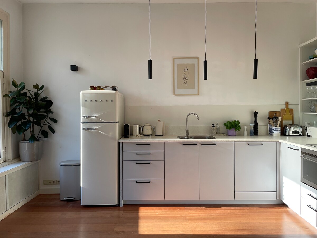 Simte-te binevenit în apartamentul nostru modern și curat. Este situat într-un cartier drăguț, la mai puțin de 10 minute de mers pe jos de centrul vechi al orașului și de gara centrală. Este o stradă liniștită lângă zona vibrantă „Lombok”. Acest lucru îl face locul ideal pentru a sta și a descoperi Utrecht pe jos. Din respect pentru vecini, petrecerile nu sunt permise. Amsterdam poate fi vizitat cu ușurință cu trenul. Acest lucru durează doar 10 minute de mers pe jos și 25 de minute de tren până la gara centrală din Amsterdam!