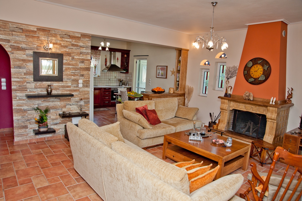 A beautiful spacious beachfront house situated just on the beach of the Corinthian Gulf in the Peloponnese, ideal for both families and couples wishing for a villa by the sea close to the most important archaeological attractions of the Peloponnese and near to the capital of Athens as well !Wireless Wi-fi all year long , brand new air-conditioning in every bedroom and closed garage among the many facilities this beachfront house is offering to guests