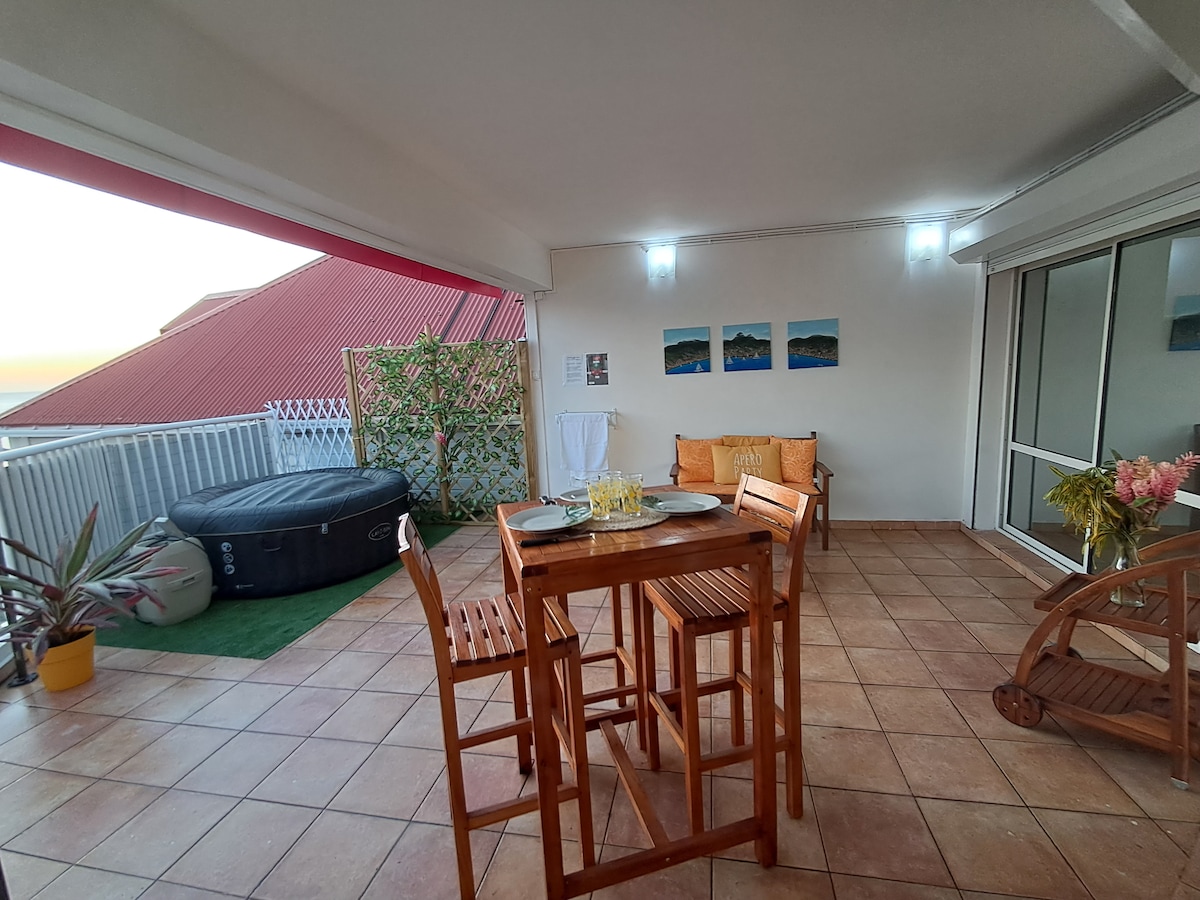 Apartament complet echipat și foarte confortabil de 35m2, cu o terasă privată de 35 m2, acces deplin la piscină și livadă. 10 minute cu mașina de la debarcader până la Les Saintes și 5' până la plaja cu nisip negru a vulcanului Grand- Anse. Intrare privată și parcare. Dacă nu găsești un program potrivit pentru călătoria ta, consultă profilul nostru Airbnb. Proprietatea oferă alte 2 apartamente de închiriat, ai putea găsi cel potrivit pentru nevoile tale!