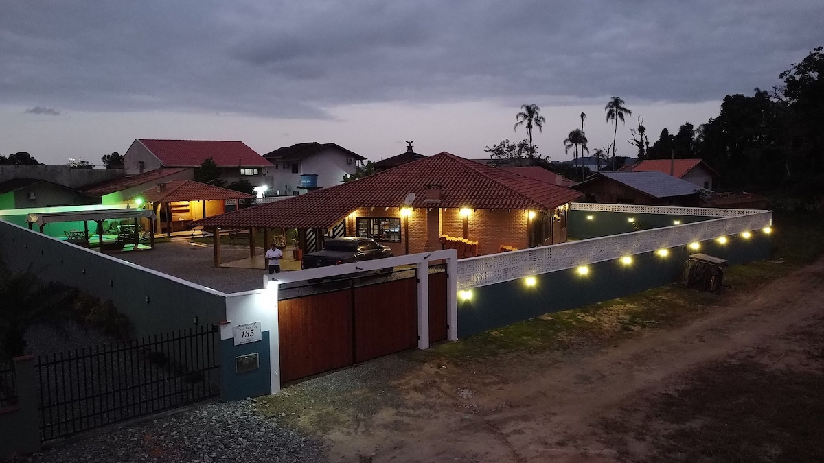 Casa na Forest în șantierul naval (Vila da Gloria), cu un spațiu interior și exterior confortabil, râu cu apă cristalină în fața casei cu caiac, vâsle și veste disponibile, cascadă cu un traseu ecologic privat, aproape de restaurante cu fructe de mare și tururi cu goeletă în golful babitonga, piețe, înghețată, farmacie, brutării și magazine de pește, printre altele. Locație foarte sigură, cu intrare și teren privat, fără contact cu terțe părți.
