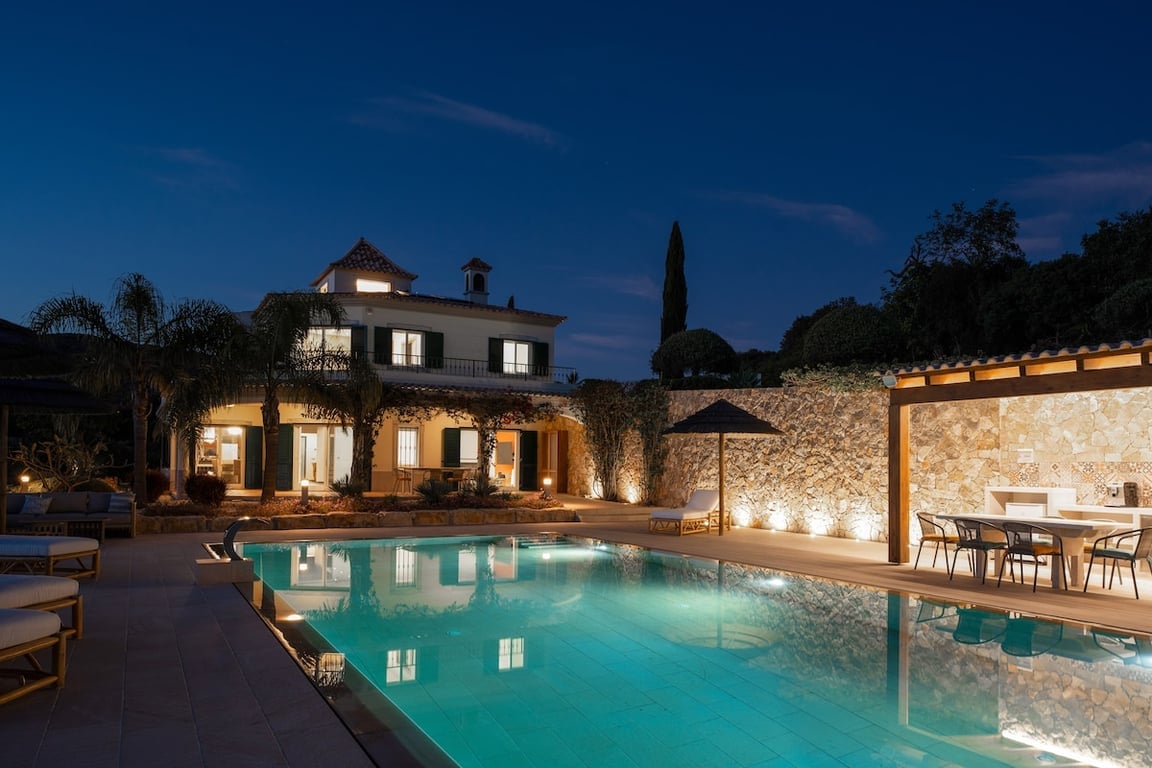 Descoperă o locuință modernă de inspirație mediteraneană în această vilă rafinată din Santa Bárbara de Nexe. La câteva minute de Aeroportul Faro și Almancil, acest refugiu liniștit oferă o piscină încălzită, jacuzzi pe acoperiș, living interior-exterior fără probleme, o bucătărie în aer liber și interioare elegante în stil mediteranean. Perfect pentru familii, cupluri sau grupuri care caută o escapadă memorabilă, cu trasee de drumeții, vedere la țară și acces la plaje, terenuri de golf, cumpărături și mese.” Trimite-ne un mesaj !
