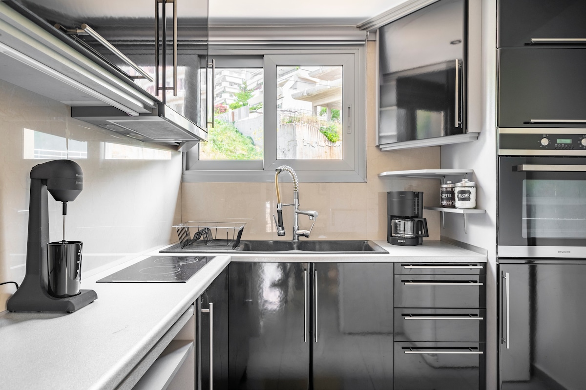 Apartament modern complet renovat, 70 mp cu grădină de 40 mp în inima Atenei de Sud, la doar 2 km de plaja spectaculoasă a rivierei din Atena și la 1300 de metri de stația de metrou Alimos (Acropole 10 min). Această reședință este situată într-un cartier liniștit, perfect pentru familii și cupluri. Bucătărie complet echipată, Smart TV cu abonament Netflix, WiFi de mare viteză, baie complet echipată, un pat superior pentru două persoane, canapea extensibilă pentru două persoane și un singur pat portabil.