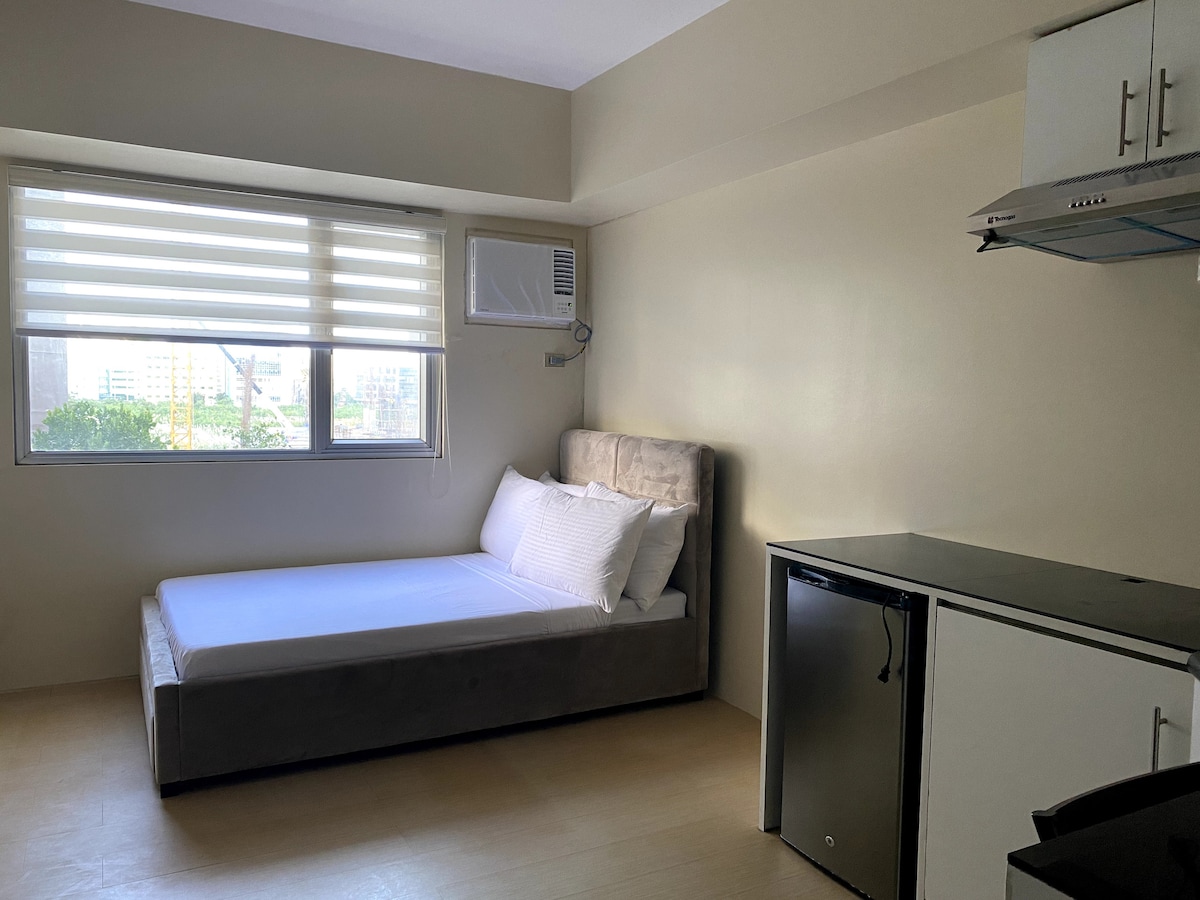 📢 PLEASE READ BEFORE BOOKING "Home Away from Home" – Studio Unit This cozy studio features 1 full/double size bed 🛏️, perfect for 2 people, plus an additional single size floor mattress (about 1 inch thick) 🛋️ that can comfortably accommodate 1 more guest. The extra mattress will only be set up if your party exceeds 2 guests. It’s your perfect urban sanctuary 🏙️, right in the heart of the vibrant Megaworld Complex! 🌟