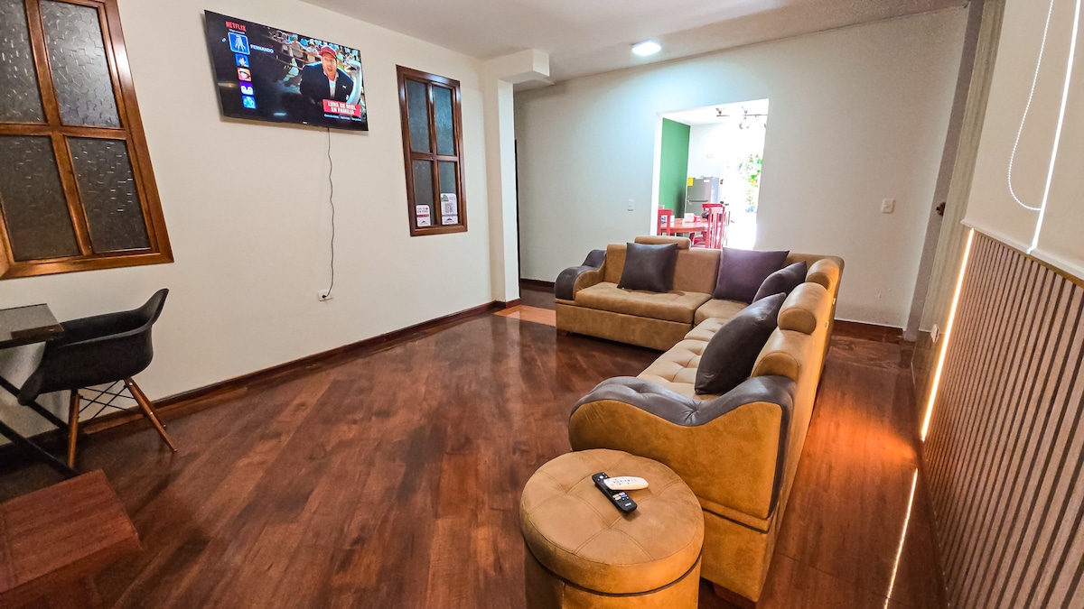 Bine ai venit la Aly Wasi, casa ta din Cotacachi. Bucură-te de un apartament comun cu 2 dormitoare private, living, bucătărie, sufragerie, o baie completă și o jumătate de baie. Accesează o terasă comună cu vedere la vulcanii Mama Cotacachi și Taita Imbabura. Situat central, aproape de piețe, parcuri și mijloace de transport. Un spațiu ideal pentru odihnă și explorare. Rezervă acum și trăiește o experiență unică!