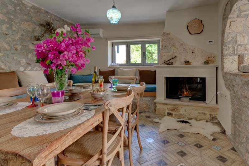 Un compus complet renovat, stonebuilt construit pe partea de sus a trei grote grecești antice. A fost o fabrică veneţiană de presă de măsline. Acum este o casă de vacanță contemporană, cu două piscine (interioară și exterioară) și o grădină de legume organică și fructe locală