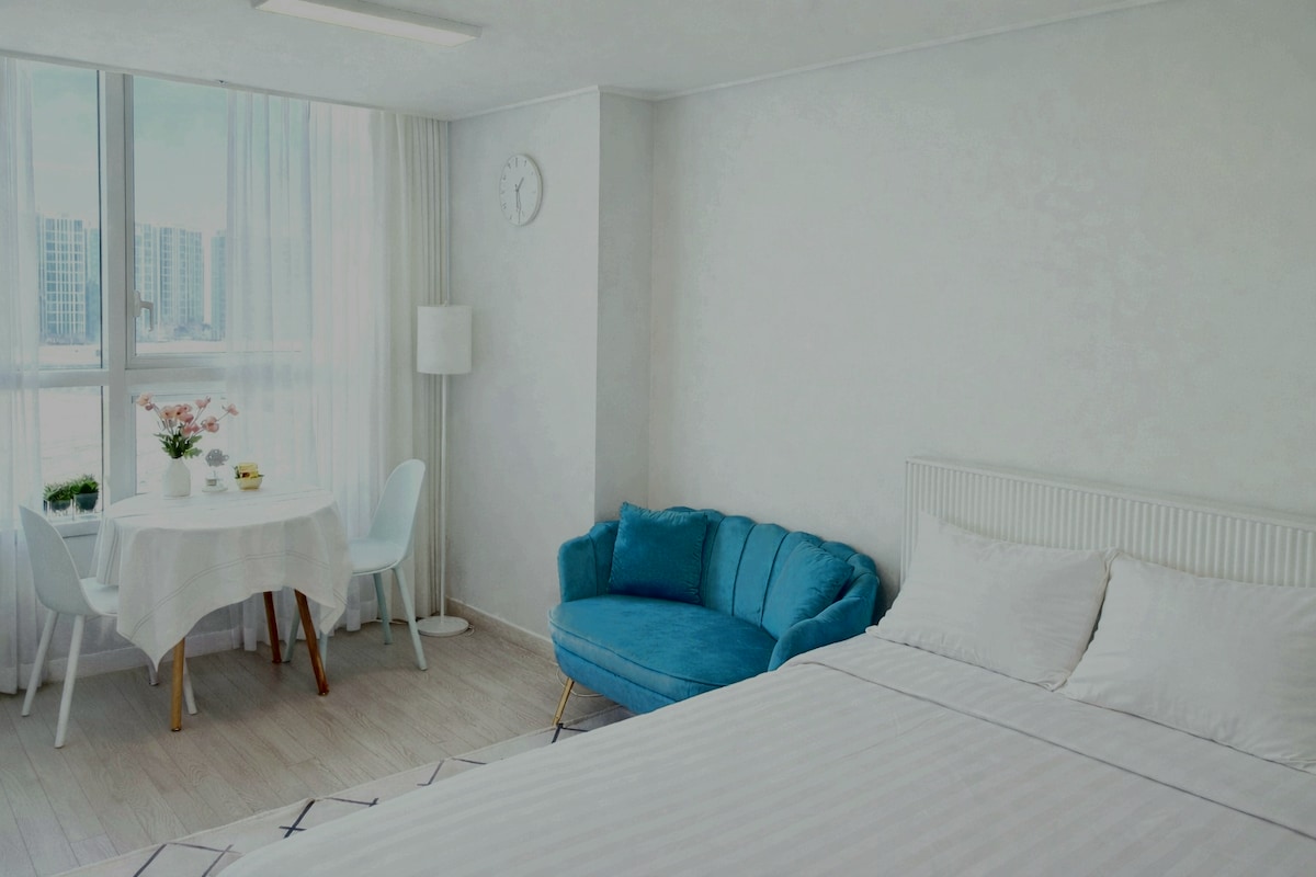 🌇 Breeze 32 | Cazare la etajul 32 cu vedere la ocean Este un spațiu calm, cu vedere panoramică la ocean. Podul Incheon și marea se întind răcoroase pe fereastră, iar la apus, apusul de soare al Mării de Vest umple ușor camera. Este potrivit pentru cei care doresc o odihnă liniștită în loc de complexitate. ✅ Cazare recomandată - Călătorie/Aniversare - Călătorie de afaceri - Pe termen lung ✈️ Flux eficient Poți călători cu ușurință înainte și după intrarea și ieșirea din țară sau într-o călătorie de afaceri ✨ 📍 Locație 🚉 5 minute de mers pe jos de stația Dalbit Festival Park 📍 Districtul internațional de afaceri Songdo, 3 minute cu mașina ✈️ Aeroportul Incheon la 30 de minute cu mașina (aproximativ 31 km) 🛍️ Songdo Hyundai Premium Outlet / Triple Street / lângă Parcul Central 🎤 Acces convenabil la evenimentele din Dalbit Festival Park (Pentaport, Festivalul Berii etc.) (Programul evenimentului poate fi modificat în funcție de anunțul organizatorului.)