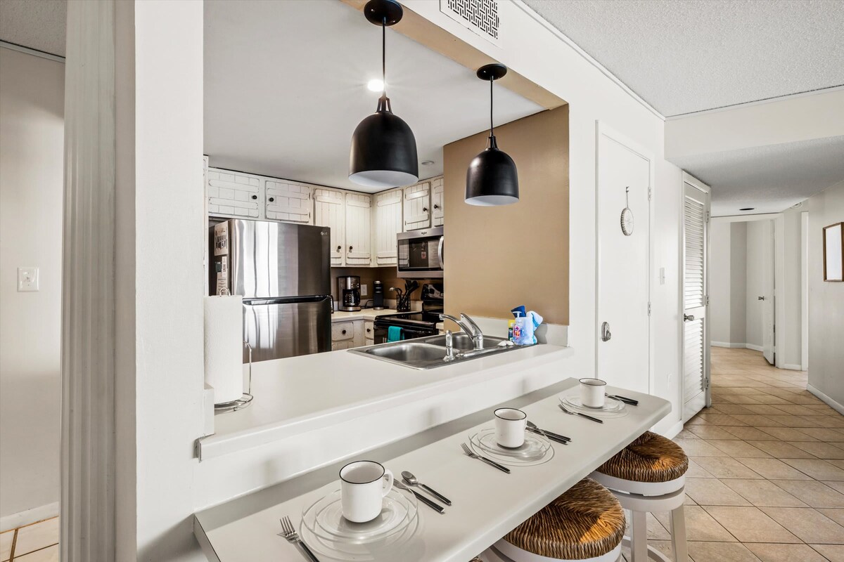 Evadează într-o oază tropicală unde te așteaptă briza mării și priveliștile uluitoare! Cocoțat la ultimul etaj al exclusivistului Ocean Club Resort, refugiul nostru liniștit pe malul oceanului îmbină confortul și liniștea. Savurează răsăritul oceanului și bucură-te de razele soarelui în timp ce te uiți la delfini și pelicani dansând peste valuri de pe terasa ta privată. Fără vecini deasupra, escapada ta liniștită este netulburată, în timp ce accesul facil la piscină, jacuzzi și plajă imaculată te invită să te relaxezi și să te răsfeți în paradis!