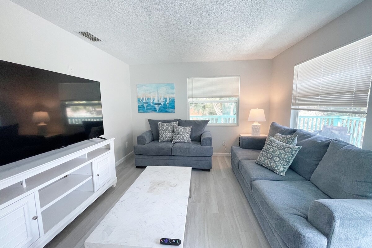 Un apartament în complex rezidențial proaspăt remodelat, pe malul mării, cu aspect de coastă. Acest apartament uimitor are un decor modern de coastă, cu culori strălucitoare, accente inspirate de plajă și priveliști panoramice asupra oceanului. Acest apartament minunat are un balcon privat care permite bucuria brizei mării și a apusurilor de soare uimitoare. Poziția centrală între Clearwater și St. Pete oferă acces ușor la restaurantele, magazinele și opțiunile de divertisment din apropiere, ceea ce îl face refugiul perfect pe plajă pentru relaxare și petrecere a timpului liber.