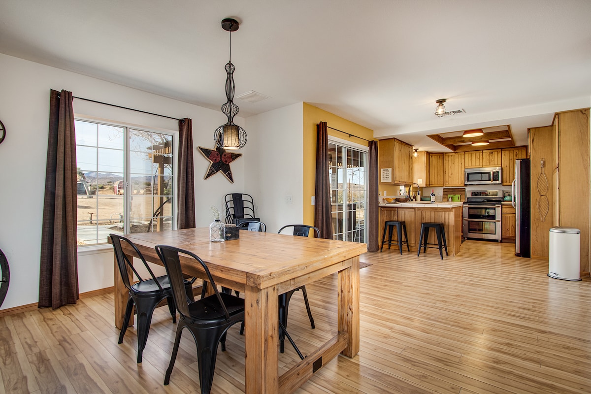 Bine ai venit la Rancho Pionera, o evadare inspirată la fermă în deșert, înconjurată de priveliști uluitoare și la 5 minute de mers pe jos de Pappy & Harriets și de istoricul Pioneertown, conceput cu confort modern + nuanță de epocă. Lucrează de la distanță sau pierde timp scăpând de lucru „în afara rețelei” și limpezindu-ți mintea în cada cu hidromasaj în timp ce inspiri priveliști de 360°, piscina Cowboy, comunicând cu Joshua Trees, Stargazing sau conectându-te cu prietenii în modul Western Retreat!