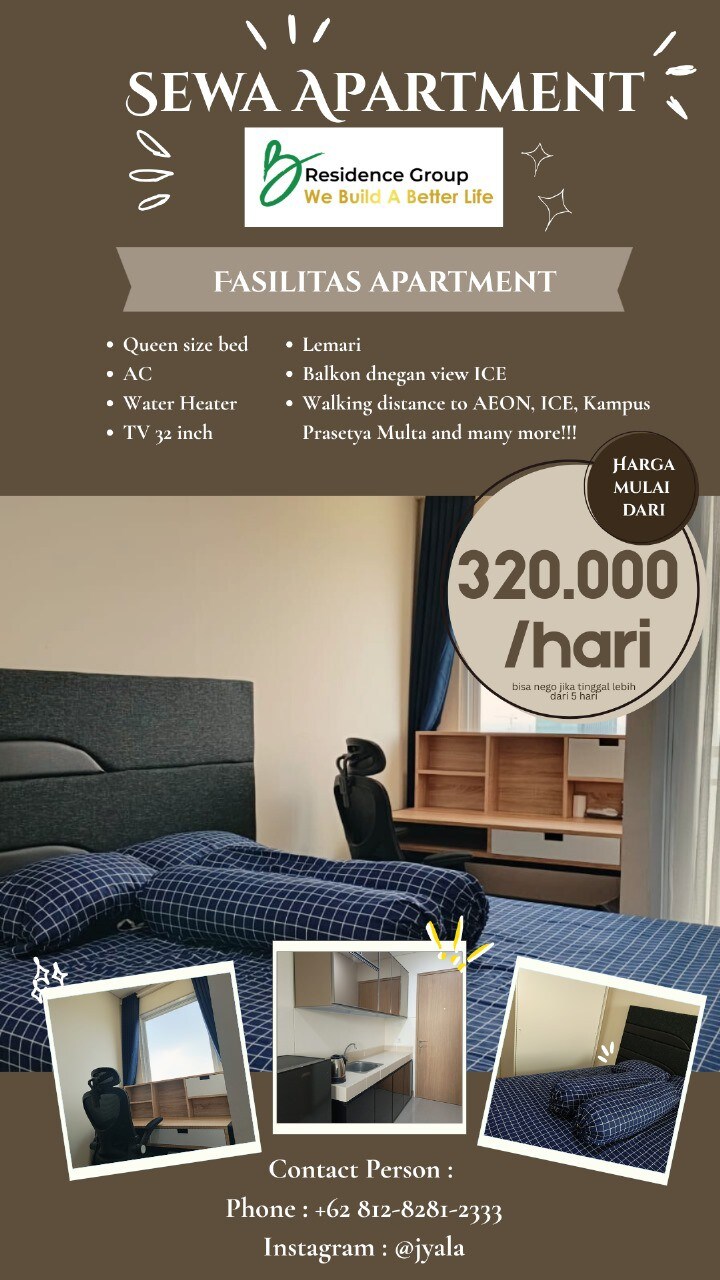 Kick back and relax in this calm, stylish space. Our apartment is brand new and decorated minimally for comfort. We accept longer stay (weekly/monthly) at a special rate, inquiry with us! We are near the breeze bsd that you can walk around and have a beautiful view and fresh air We are also close to aeon mall that have many good japanese food and only 3 km from Ice bsd Pets are not allowed in this building. bathroom drain is currently slow to adsorb water. kindly wait until it drain🙏🙏
