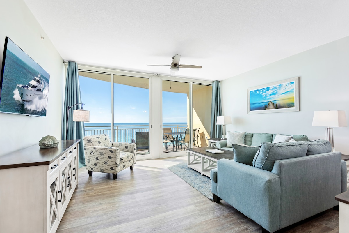 Elegant 1BR/2BA condo at Majestic Sun with breathtaking Gulf views from the spacious 10th floor balcony. Stylishly furnished with a coastal touch, it features a king bed, ensuite bath, hallway bunks with their own TV featuring Netflix, and a queen sleeper sofa. Enjoy a full kitchen, high-speed Wi-Fi, and TVs in every room. Located in the A building near covered parking with easy access. Guests return year after year for the ocean and beach views, comfort, and unforgettable beach experience.