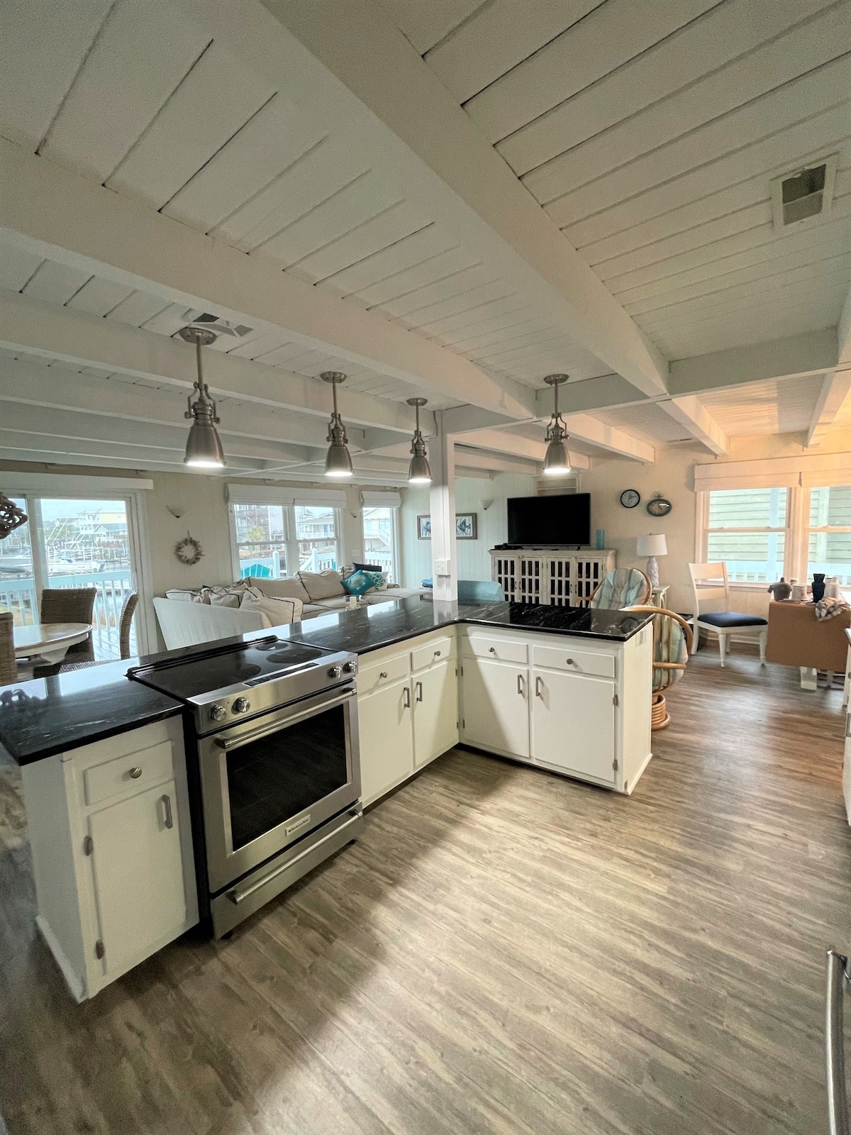 Situat pe un canal de apă adâncă și la câțiva pași de plajă, Tipsy Tuna este o destinație de plajă shabby chic cu două dormitoare și chic, situată pe plaja Holden, Carolina de Nord. Această destinație de vacanță este ideală pentru familii mici și cupluri care caută o locuință confortabilă, la câțiva pași de o plajă cu nisip și are toate dotările necesare pentru o escapadă liniștită și relaxantă pe plajă. Vrei să-ți aduci barca și să explorezi apele din jur? Această locuință este perfectă pentru tine!