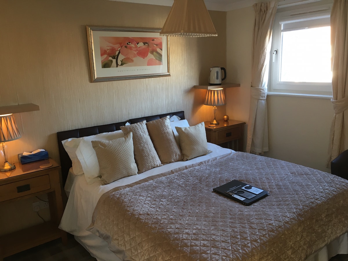 Mic dejun din partea casei Cameră de culoare gri cu lenjerie de pat gri/albă cu caracteristică Cerb. Prosoape furnizate împreună cu șampon de săpun și hârtie igienică. Există un sertar în baie „obiecte uitate și haine pentru față pentru oaspeți” și un uscător de păr în cameră. Camera este formată din dulapuri de noptieră cu 3 sertare , măsuță de toaletă, dulap încorporat, pat matrimonial (dimensiune uk), tavă TV de curtoazie și frigider mic. Baie privată O spălătorie de servicii este disponibilă de către gazdă 10 £ per încărcătură spălată Uscător automat de rufe 10 £ per încărcătură