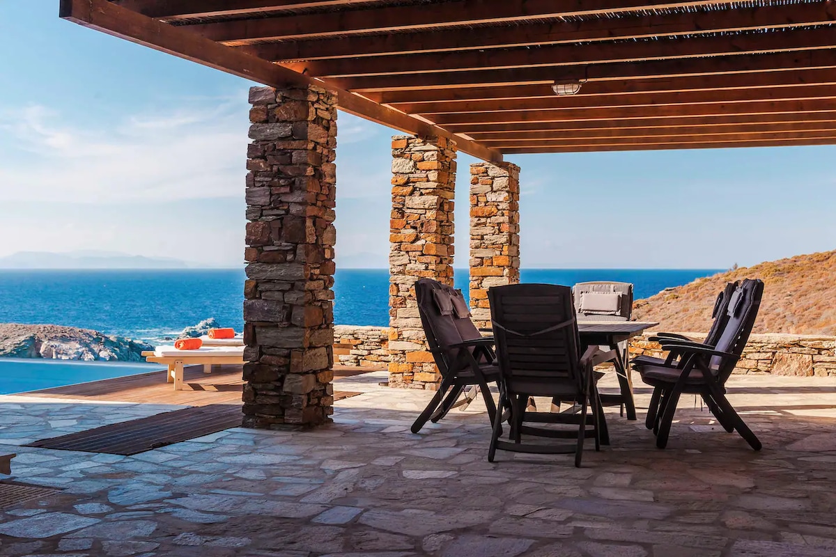 Vilă de lux din piatră cu vedere la mare și piscină în Kea