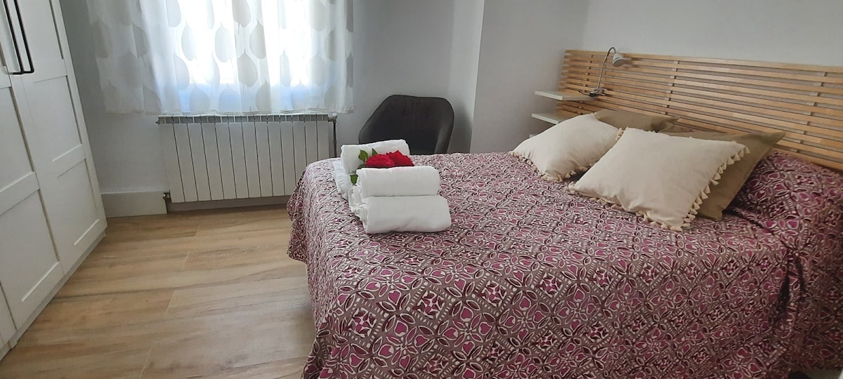 Bine ai venit în noul nostru apartament din Aoiz, între Pădurea Irati și Pamplona. Recent construit, găzduiește 2 (+1) oaspeți și include o zonă de living-sufragerie cu bucătărie și Smart TV, aragaz pe peleți, aer condiționat și un birou cu Wi-Fi de mare viteză — ideal pentru lucrul de la distanță. Bucură-te de o terasă privată și de parcare acoperită. Lângă râul Irati și la doar 5 minute de un spa local, este perfect pentru relaxare sau muncă în timp ce explorezi frumusețea naturală a Navarrei.