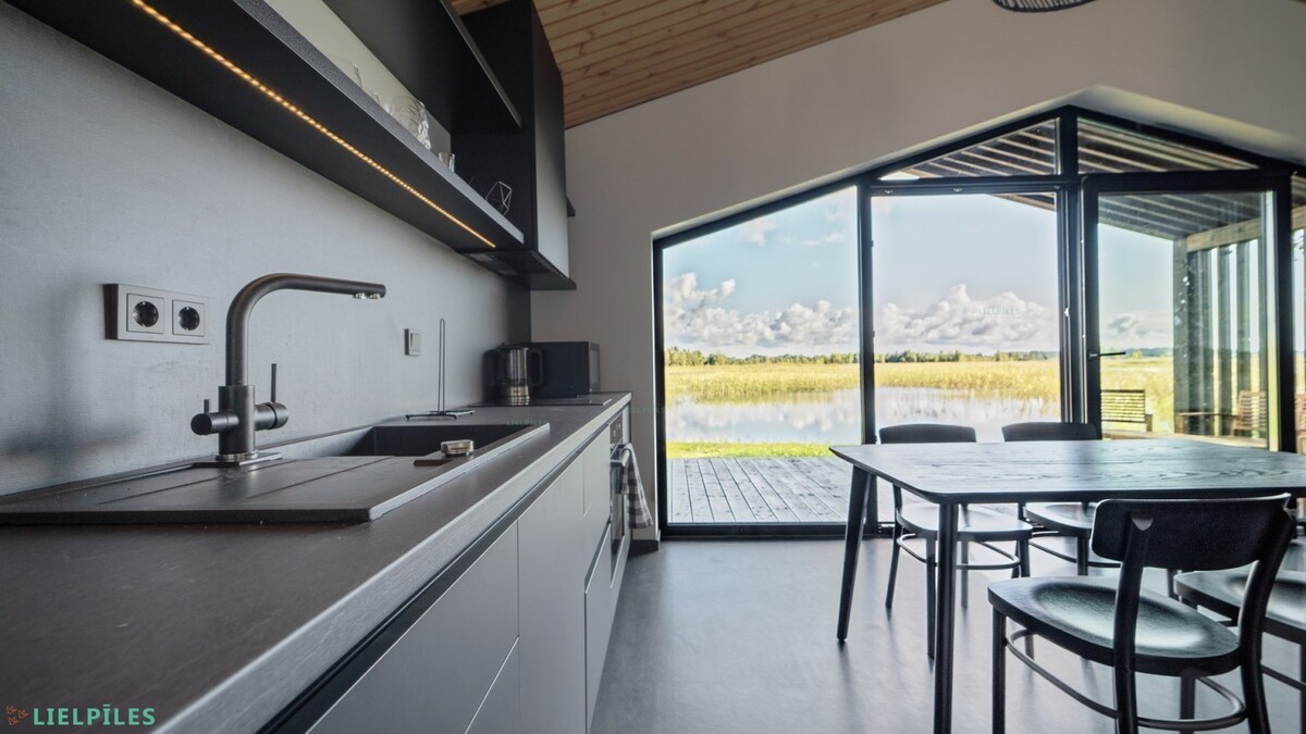 Relax and unwind near serene Valgums Lake. Nestled in Kemeri National Park, space is perfect for nature lovers, offering sights of playful squirrels and diverse bird species right from your doorstep. The house is designed for comfort, featuring heated floors and an indoor fireplace for year-round coziness. The fully equipped kitchen makes meal preparation easy, and you can start your day with a perfect cup of coffee.