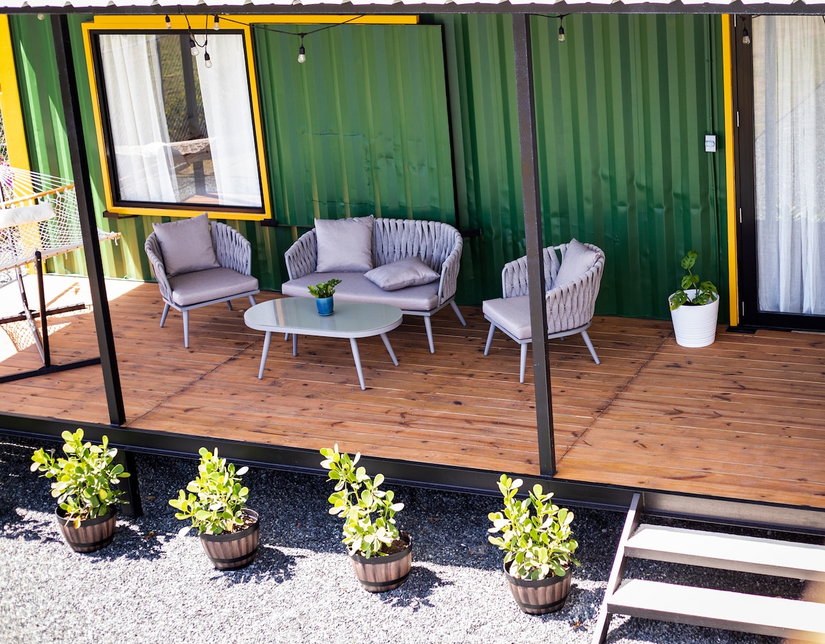 Locuință tip container - cadă cu hidromasaj privată + aproape de plajă
