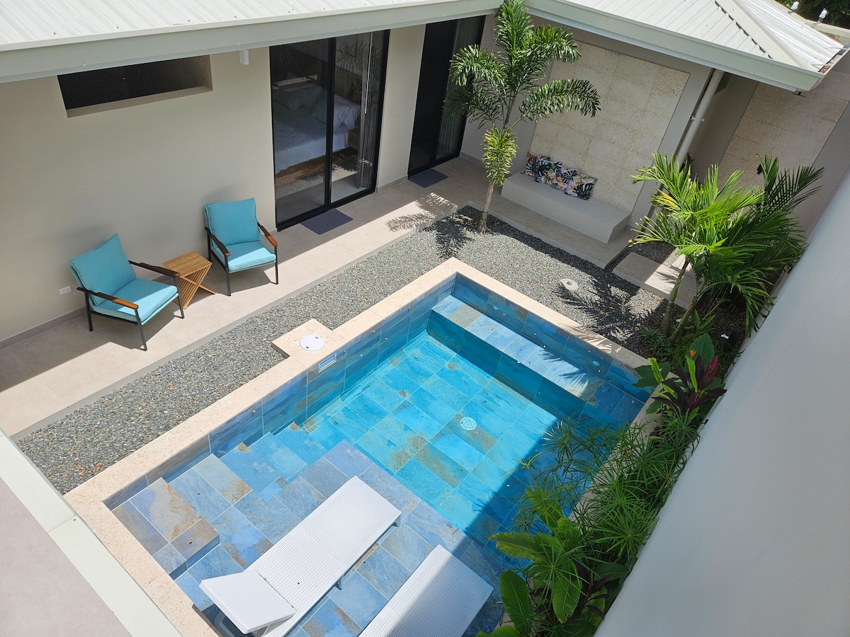 Adormi și te trezești cu bâlbâitul blând al unui pârâu din pădurea tropicală din apropiere, cu valurile oceanului îndepărtate și cu păsările tropicale în vârfurile strălucitoare ale copacilor. Acest 1bd/1ba modern, dar confortabil, are toate dotările esențiale pentru bucătărie, grătar și o baie de lux cu vedere la junglă și capete duble de duș. Ieși afară și intră în piscina cu margini infinite, cu iluminare personalizabilă și vedere la ocean. Maimuțele, leneșii, tucanii, coati și cascadele abundă. Înconjoară-te de o frumusețe liniștită, vibrantă, naturală.