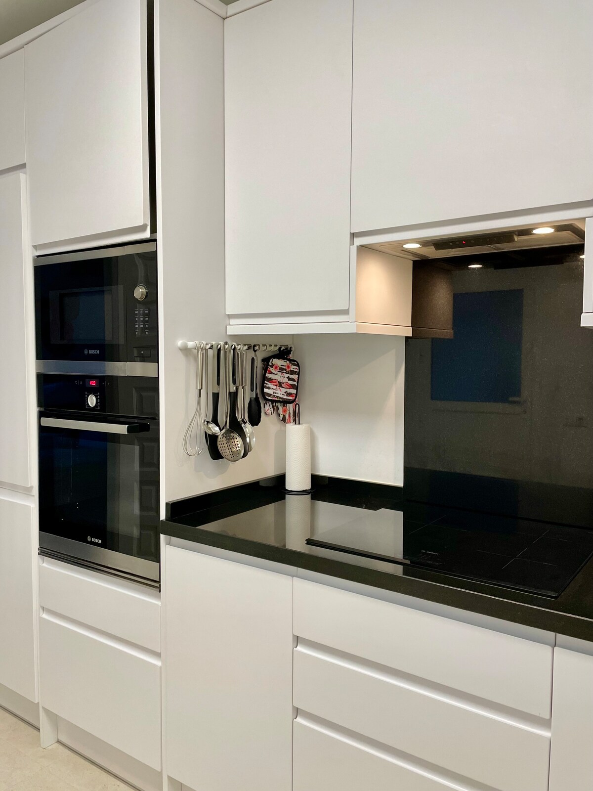 Apartament de 120 m² pe malul mării, la colțul etajului 21, cu vedere panoramică la Marea Mediterană din aproape fiecare cameră. O descoperire rară în Benidorm datorită spațiului, poziției și intimității sale. Trezește-te cu fața spre mare, bucură-te de micul dejun în lumină naturală și încheie ziua cu un pahar de vin la apusul soarelui. Recent renovat, luminos și proiectat cu atenție, cu iluminare LED reglabilă. Piscină comună și parcare privată incluse.