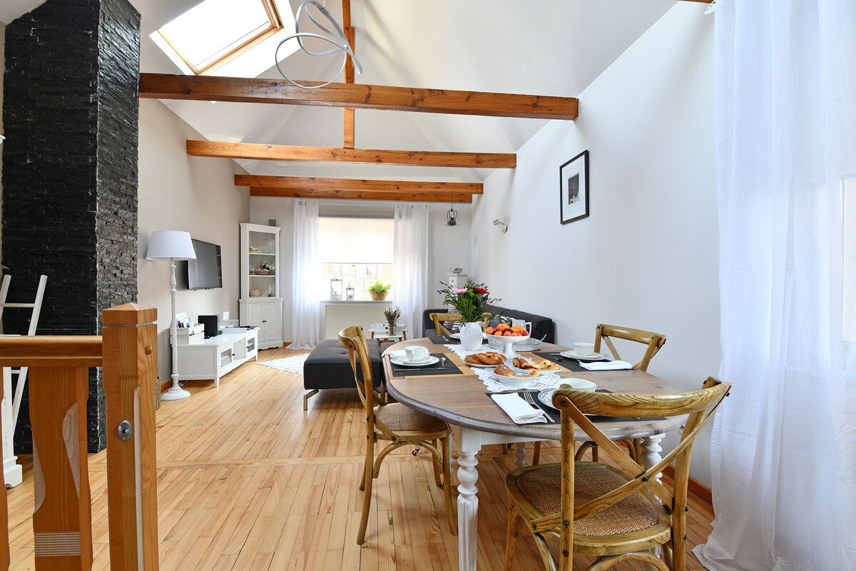 Studio foarte frumos mobilat cu gust în mansarda unei case tipice alsaciene, foarte liniștită. Dormitorul de la mezanin este accesat de o scară. O terasă comună mare îți permite să te bucuri de soare. Locație ideală pentru a vizita podgoria, cramele sale, piețele de Crăciun... Parcare gratuită la 200 de metri de casă. Gueberschwihr are un loc de alpinism remarcabil.