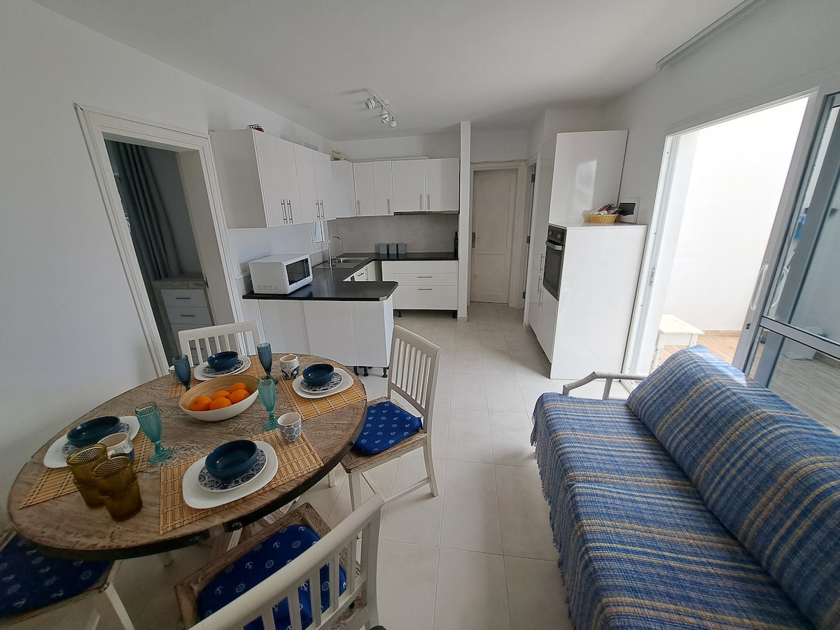 Apartamentul situat la etajul superior se află într-o zonă rezidențială foarte liniștită. Este recent renovat și complet echipat, este foarte spațios cu 50 m2, bucătăria și sufrageria sunt situate în fața mării. Balconul este acoperit și vitrat în partea de nord ca parbriz. Priveliștea panoramică fantastică a oceanului este cea mai bună! De asemenea, este inclusă o grădină privată și independentă la parter: Aceasta este o vacanță perfectă! Toate acestea la mai puțin de 50 m de plajă!