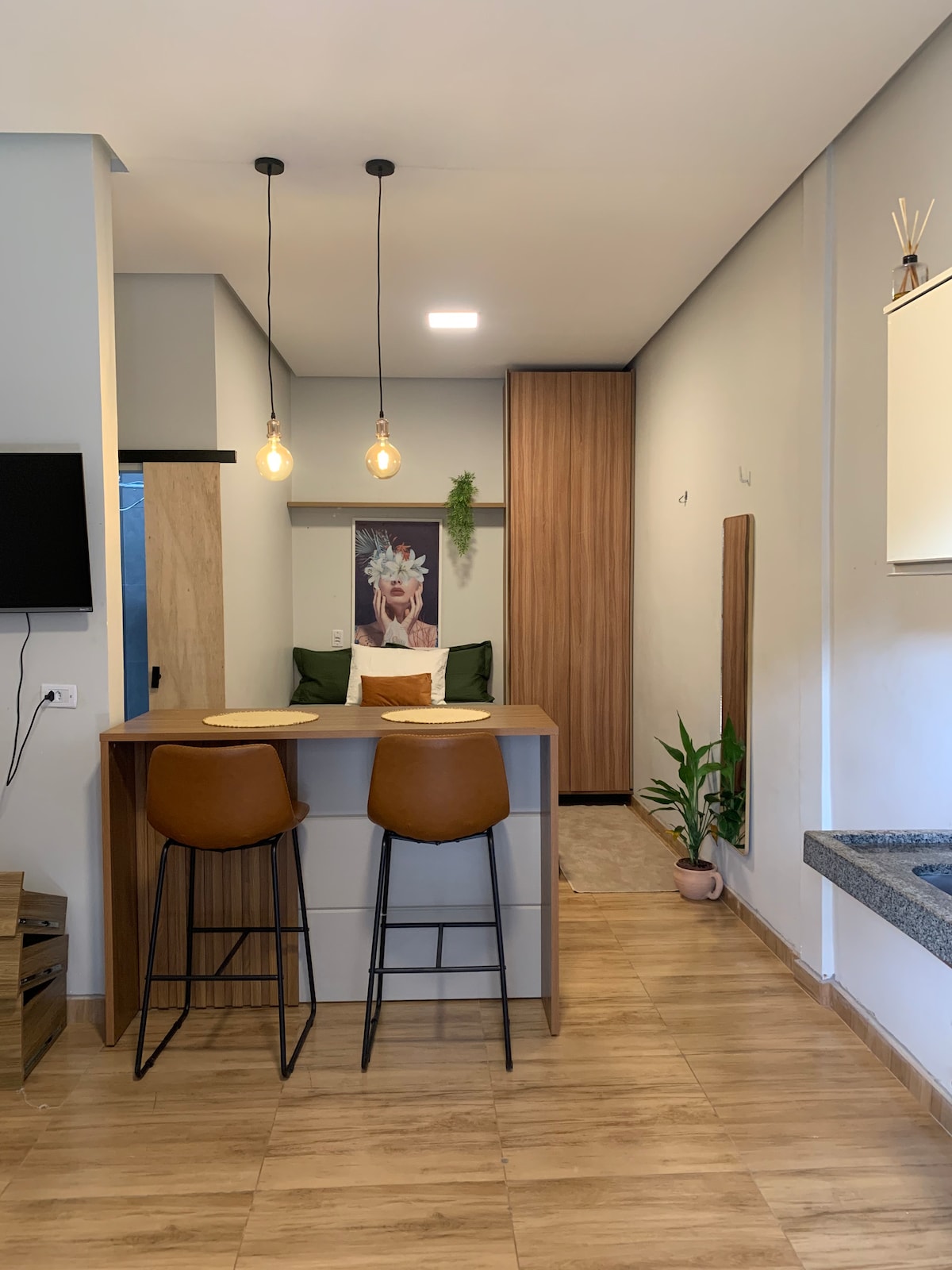 Espaço inteiro -Quarto e cozinha