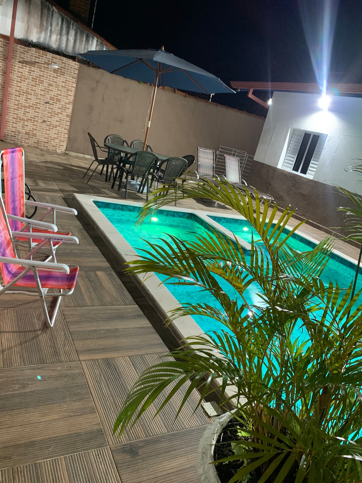Casă excelentă în cartierul Oasis, Peruíbe - SP. Poziție excelentă, aproape de supermarketuri și alte facilități. La 800 m de plajă se află la 800 m de plajă Acesta are 2 locuri de parcare, 3 dormitoare, 6 paturi, gazon mare, cârlige pentru hamace, masă de biliard, zonă cu grătar. Bucătărie echipată cu aragaz, cuptor cu microunde, frigidere, ustensile de uz casnic, aer condiționat, Smart TV de 55 ", internet 120 mega, Wi-Fi.. Piscină cu spa și iluminat de noapte în LED. Accept numai animale de companie mici / mijlocii.