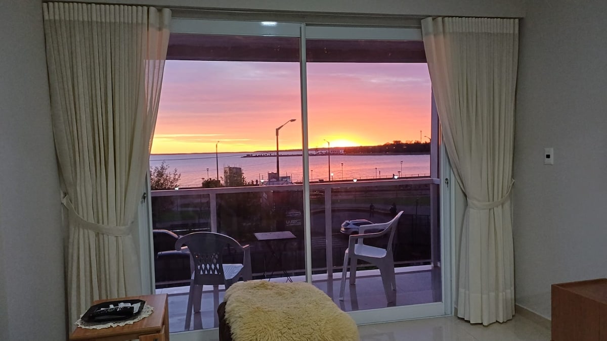 Apartament cu balcon cu vedere la râu și locație excelentă!📍. Mergi pe jos până la Costanera, Playa San Jose🏖️, restaurante🍴 și Shopping Costanera🛍️. Cameră principală cu pat dublu🛏️, living cu canapea extensibilă(2,10 x 0,95 x 0,92)🛋️, sufragerie, bucătărie integrată și baie modernă 🚿 Serviciu de securitate 🔒 și spălătorie non-stop în interiorul clădirii pentru confortul tău. Aires se desparte în cameră și în sufragerie.