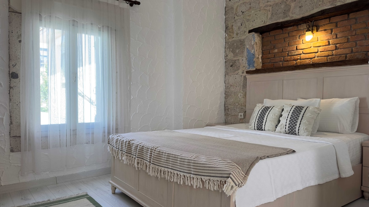 Camera noastră de piatră este İON ; pentru 2 persoane Intrare în grădină cu un etaj în confortul locuinței Este o cameră de piatră în Tiny House Concept Zonă mică pentru prepararea aperitivelor Consumabile precum TV LCD,aer condiționat,frigider, aparat de ceai etc. Afaceri de familie: serviciu de cafenea non-stop - serviciu BBQ Avem un bar cu vitamine și o cafenea. MARE,RESTAURANT, ORAȘ ANTIC, PIAȚĂ FAIMOASĂ DE CAFENELE la 1 minut de mers pe jos POZIȚIE FOARTE BUNĂ, VACANȚĂ PRACTICĂ UȘOARĂ ȘI ODIHNĂ FĂRĂ MAȘINĂ Oportunități de autobuz tot timpul Wi-Fi gratuit, joc de table, okey Ilıca 10-ALAÇATI 15-Cesme-20 min NU AVEM APĂ!