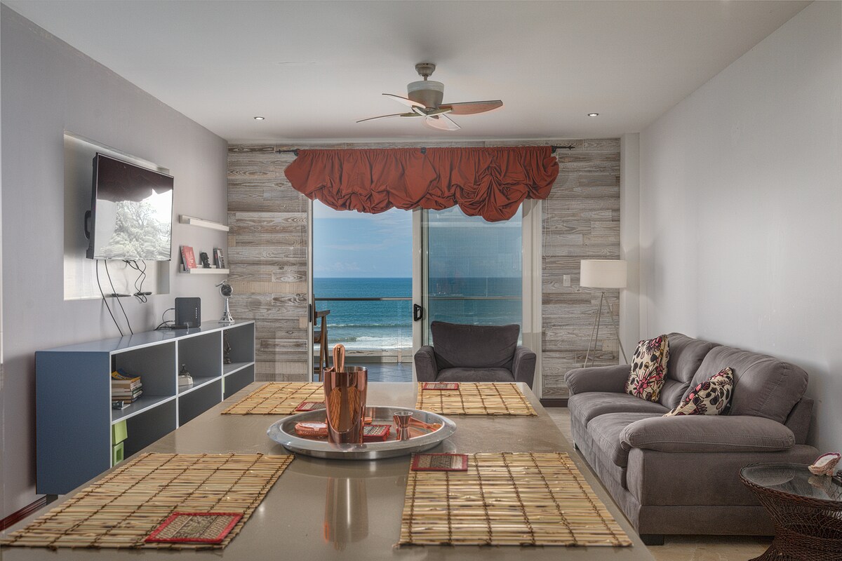 Beautifully renovated, penthouse right ON THE BEACH! Amazing ocean views with multiple balconies and PRIVATE roof top terrace. Gorgeous 3 tier pool area and fast WiFi with 2 Smart TVs. Just steps to the beach and 10-15 minute walk to dozens of restaurants and shops! Gated complex with 24/7 security. Tons to do in and around Jaco, everything from world class fishing and surfing to rain forest waterfall hikes, to ATV tours, whitewater rafting and zip lining, etc Enjoy the Pura Vida lifestyle 😊