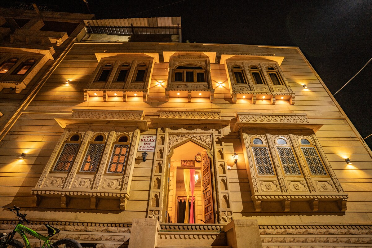 Bine ai venit, locul nostru este un Jaisalmer Haveli original (reședință tradițională, decorată ornamentat). Este frumos peste tot, cu o atmosferă contemporană de deșert. Haveli are trei camere medievale decorate în nuanțe vii de galben, lime și verde, toate bine dotate cu paturi confortabile, oferă cele mai bune facilități de astăzi și o terasă bine mobilată. Băile spațioase și curate din marmură Jaisalmer sunt bine proiectate, cu confort modern. Zonele comune sunt un bonus