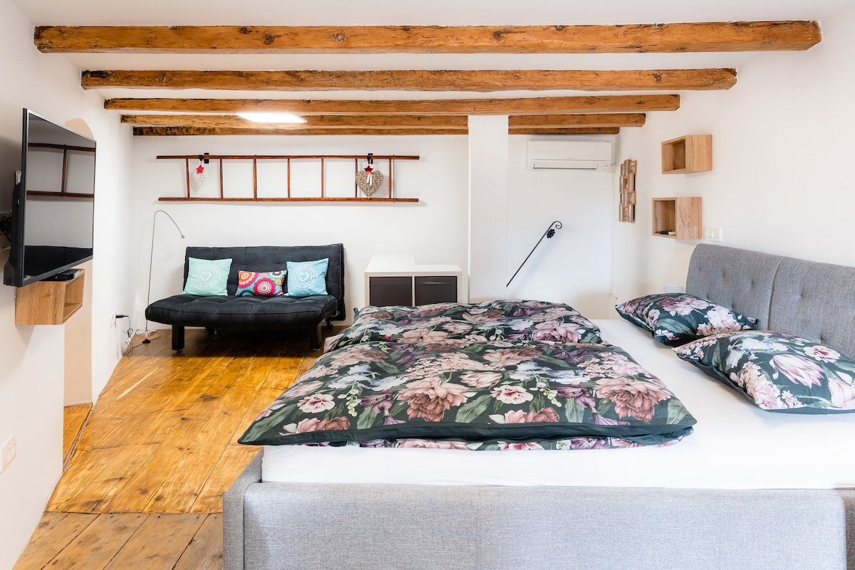 Apartamentul este situat în parcul central din Ljubljana, la marginea păduri, unde este probabil să dai peste căprioare și iepuri de câmp. Mediul are o atmosferă artistică: Centrul grafic cu cafeneaua sa frumoasă și Švicarija cu studiouri ale unui număr de artiști sloveni și un bistrou, se află în imediata apropiere În timpul verii, există evenimente artistice, concerte și spectacole. Este la 15 minute de mers pe jos de zona veche a orașului, mai ales prin parc.