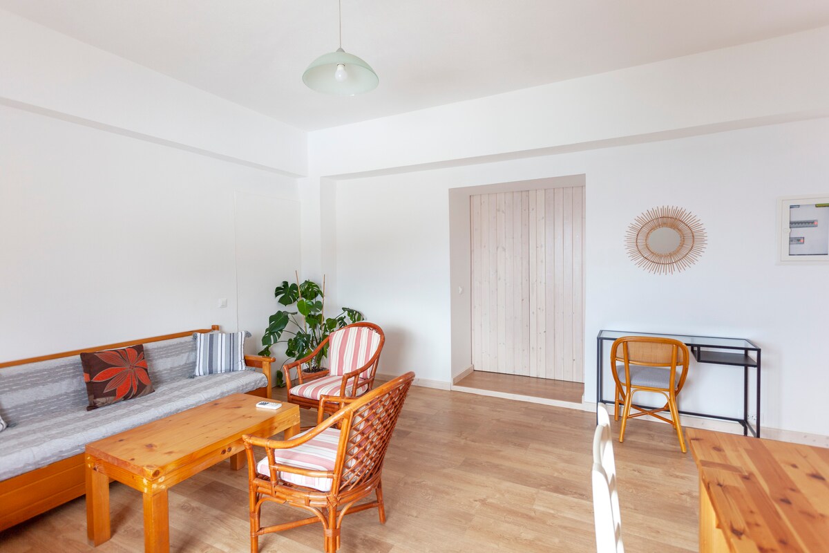 Apartament recent construit, care combină o vedere panoramică la mare și apusurile sale uimitoare, cu o atmosferă confortabilă. Prin apartament veți întâlni un living spațios cu o canapea mare care poate fi transformată într-un pat matrimonial (pentru 2 persoane). Veți găsi, de asemenea, o bucătărie complet utilată. Dormitorul spațios include un pat matrimonial și un dulap. În plus, există o baie modernă.*atât bucătăria, cât și dormitorul au acces la balcoane separate și conțin televizoare și aer condiționat.
