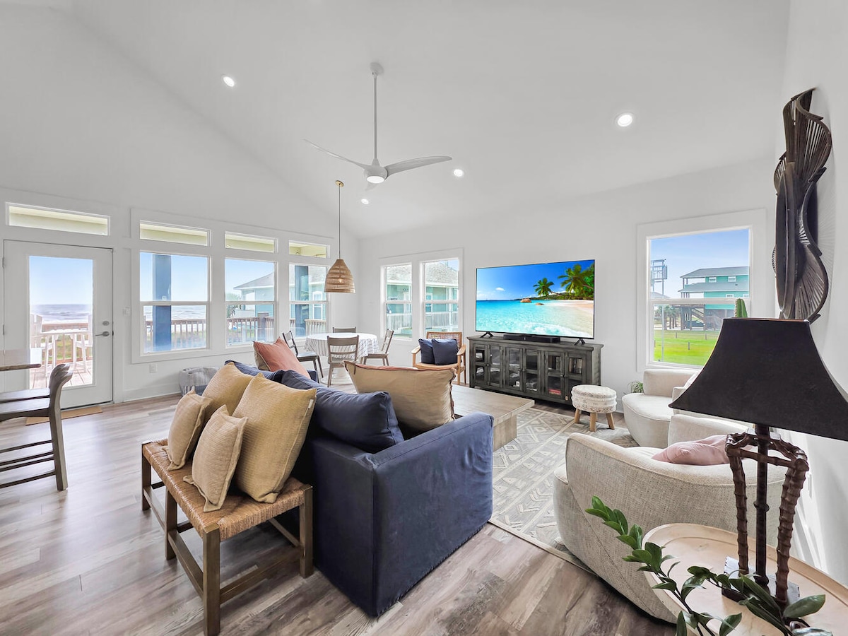 Hasta La Vista! Relaxează-te în această casă calmă și elegantă pe plajă. Stai pe puntea cu cafeaua și ascultă cântecele păsărilor de pe țărm și liniștea liniștitoare a oceanului. Grăbește-te cu niște momente bune la parter. Au un cocktail delicios pe terasă în timp ce joci cornhole. Fă s'mores dulci la groapa de foc. Fă o plimbare rapidă de 3-5 minute cu 1 bloc până la plajă, fără a fi nevoie să eviți traficul sau să traversezi o stradă importantă. Bucură-te de toată istoria și farmecul insulei Galveston!