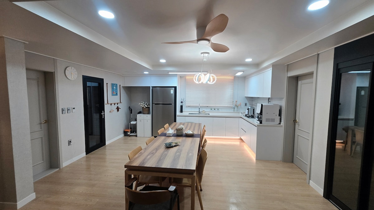 Ocean view with the best beauty in Korea !!! You can enjoy sunrise and sunset at the same time, and the clear air of your heart, the sound of the waves crashing on the rocks, the sea shining in the moonlight, the floating boats at night. Also, You can enjoy spa in the bathtub reminiscent of a pool villa, and the interior space made of hotel-grade materials. 본 숙소는 미스터멘션 특례를 적용받아 내국인 공유숙박 합법 업체로 등록되어 운영되고 있습니다