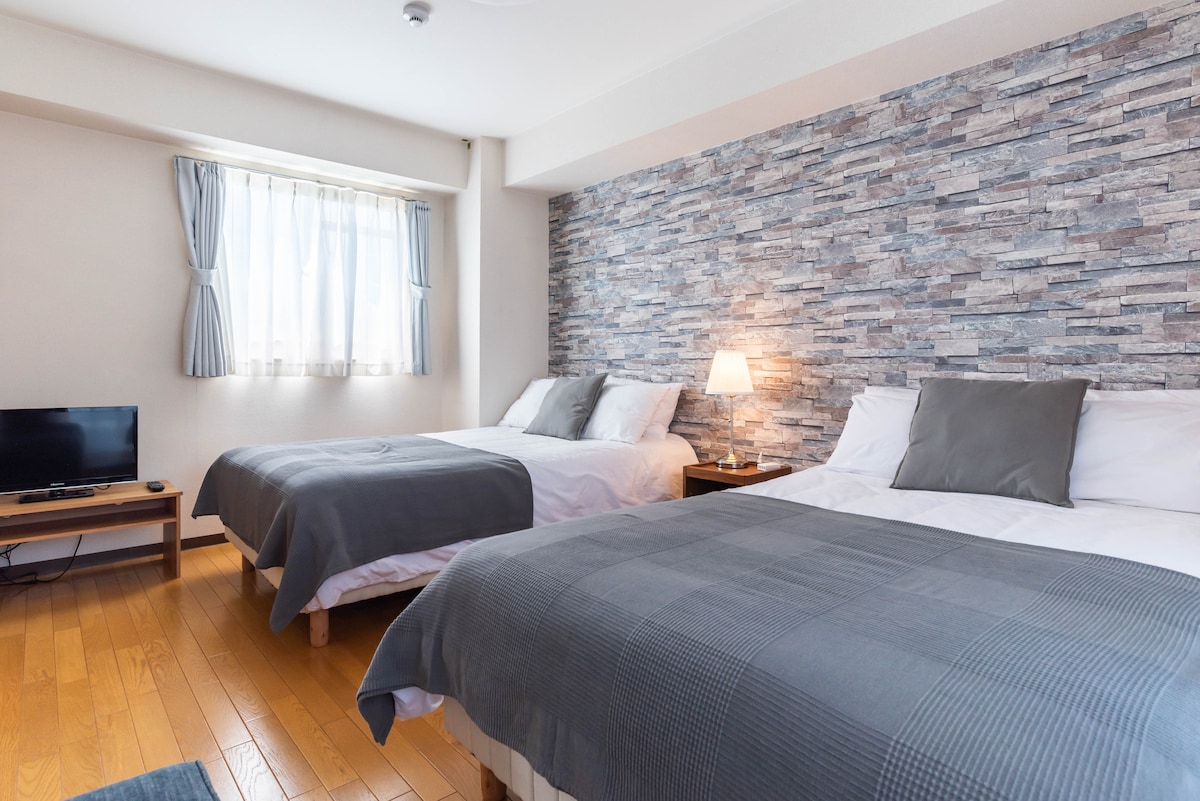 A room where you can see Tsutenkaku from the window! Newly built luxury apartment. It's a convenient area for sightseeing as the subway, JR, and Nankai lines run through it! Tsutenkaku, Spa World, Abeno Harukas, Tennoji Zoo, Dotonbori, Namba, Shinsaibashi, and Kuromon Market are also nearby. Don Quijote is a 5-minute walk away. Convenient self check-in/check-out. The room has 1 sofa bed, 1 Queen bed, and 1 single bed, each with air conditioning and heating.