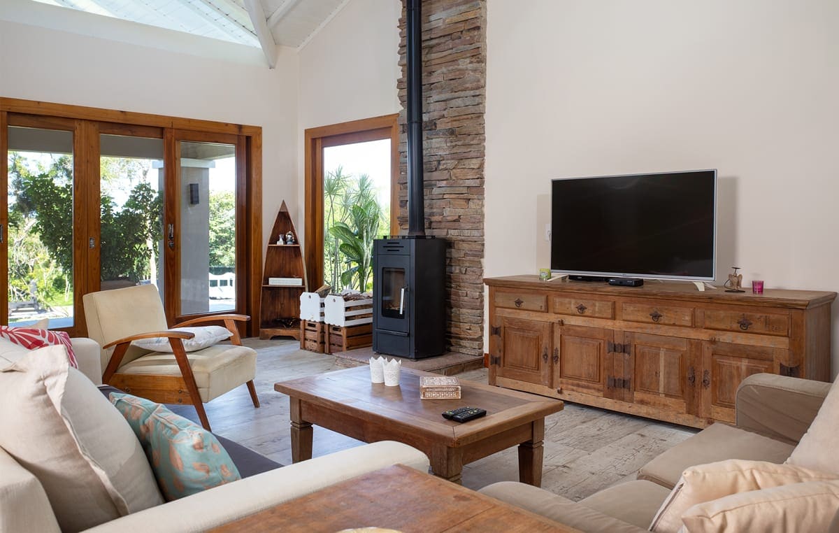 Casă cu influența vilelor balineze, rustică, dar extrem de confortabilă și rafinată, cu totul la cel mai înalt standard, mobilier, electrocasnice, pat și băi. Zonă de vis pentru gurmanzi, cu grătare cu gaz și cărbune, cuptor cu lemne, plită și afumătoare. Spa cu 1,4k litri încălziți, saună plină cu piatră hijau cu vedere panoramică la pădure. 5 pânze uriașe, 2 dintre ele de 75". Equipamentos Elettromec, Kitchen Aid, Le Creuset. Internet 500 Mb. Paradis pentru iubitorii de mâncare!