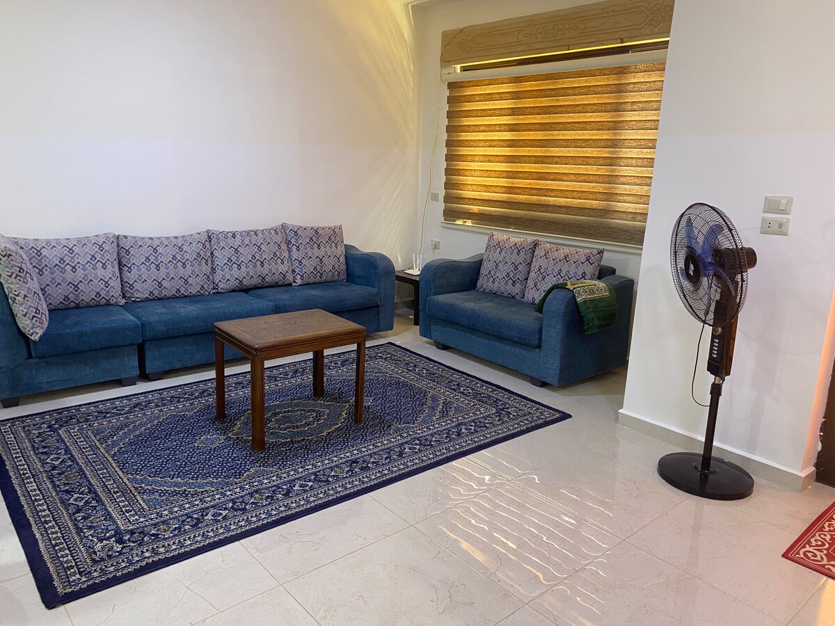 Apartament confortabil nou cu 2 paturi în Jarash/Jordan , toaletă mare cu duș frumos, bucătărie frumoasă cu echipamente de gătit, masă , aer condiționat , Wi-Fi , TV , canapea extensibilă , aproape de centrul orașului, toate locurile turistice, orașul istoric român și munții .