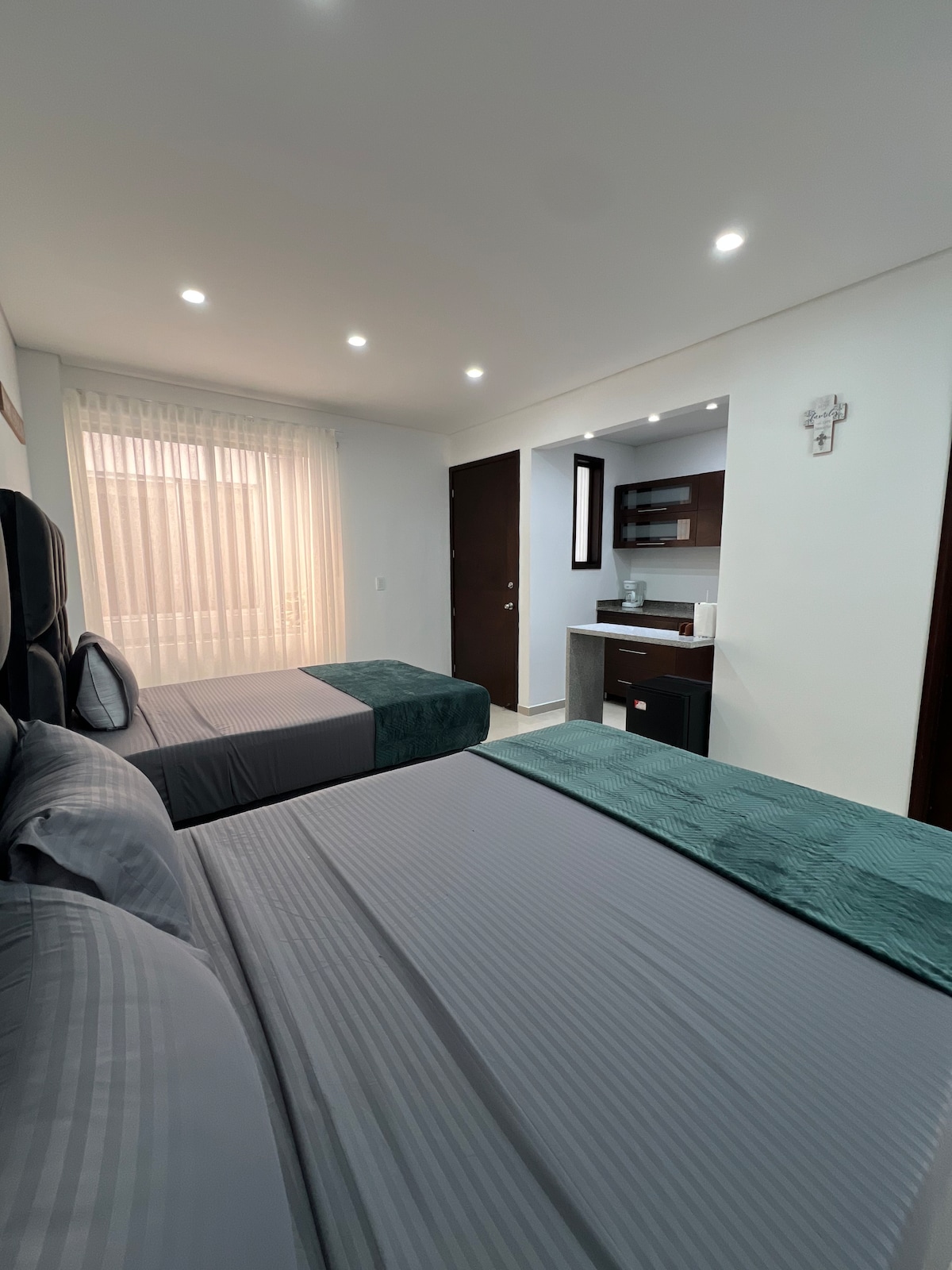🌴 APARTAMENT EXSTR • Brisas del Peñón 401 Penthouse elegant cu 2 dormitoare și 2 băi, cu vedere frumoasă la emblematicul Trei Cruci din Cali. Bucură-te de Wi-Fi rapid de 300 Mb, două stații de lucru (una cu birou electric + monitor), SmartTV-uri, aer condiționat în dormitoare și ferestre care reduc zgomotul din dormitorul principal. Terasa privată oferă mese în aer liber, un grătar și o bucătărie mică — perfectă pentru a te bucura de serile calde din Cali. Situat pe o stradă liniștită mărginită de copaci, la câțiva pași de brutăria Krost și tot ce este mai bun din El Peñon.