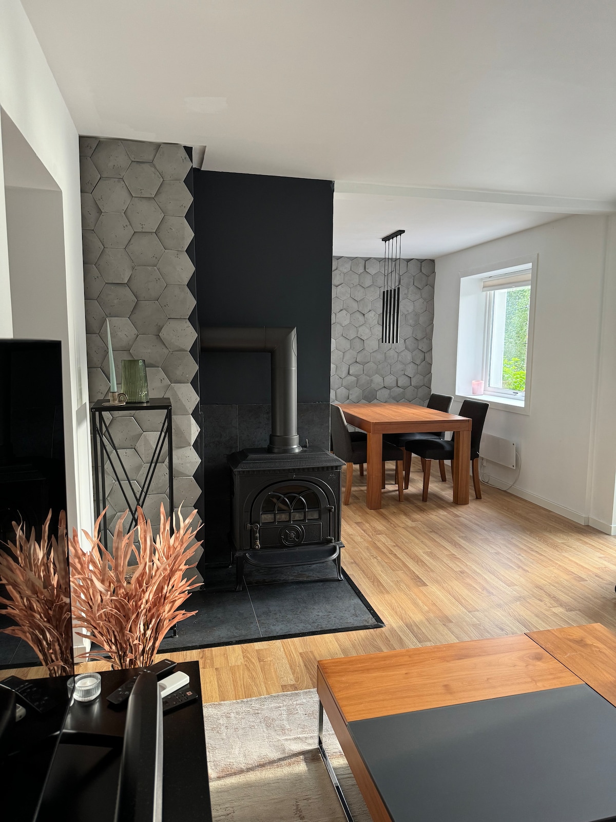 Cozy and stylish apartment in a converted old barn on our traditional Norwegian farm. Nestled in the heart of the Norwegian countryside. From the windows, you’ll enjoy a stunning view of a picturesque valley, with open fields and forests stretching across the landscape. Come and experience the perfect blend of rustic charm and modern comfort on our farm. The apartment features recycled materials and solar panels for green energy year-round. Welcome! #Laavely_snertingdal