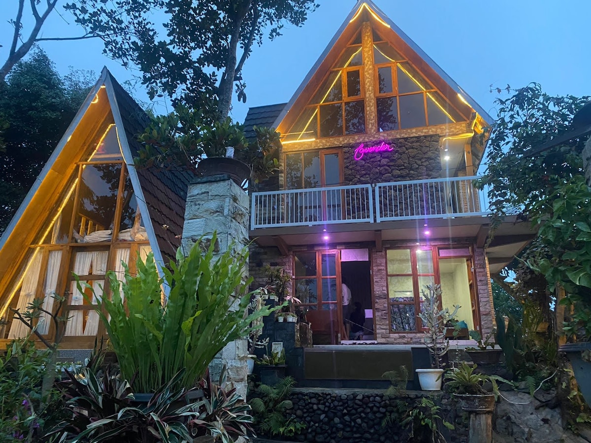 A unique and cozy 2-storey 3-bedroom cottage with mezzanine and indoor fireplace, located in a tranquil and cool village of Nongkojajar region on the way to Bromo. Suitable for young family or tourist group who want to visit and explore Bromo and its surroundings in the Bromo Tengger Semeru National Park, East Java, Indonesia.