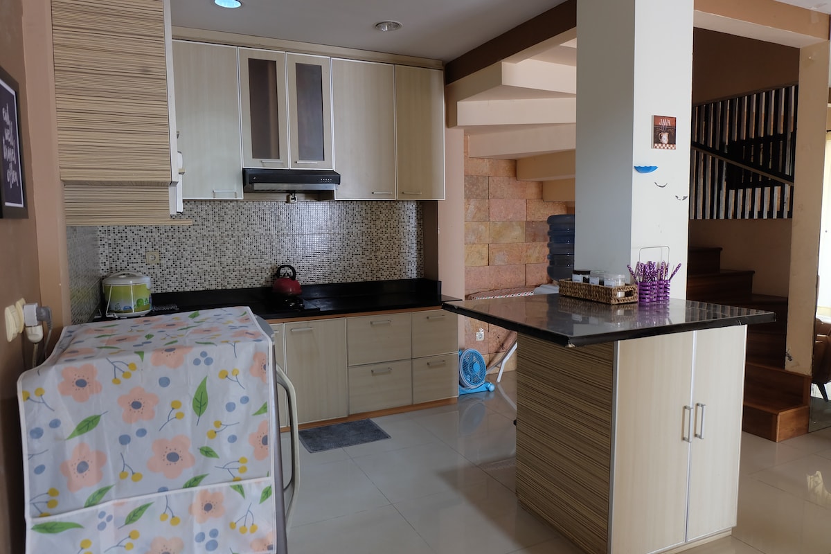 Casă de oaspeți confortabilă, atmosferă liniștită și simte-te ca și cum ai locui în propria locuință cu facilități complete: Wi-Fi, aer condiționat, TV (poate fi Neflix și Vidio), frigider mic, duș Baie cu boiler, parcare auto este 🚙 ușurată, potrivită pentru familii sau rame2 cu prieteni (maximum 4 oaspeți adulți) cu 2 paturi duble rele (140 x 200) Locație 3 KM de TSM Cibubur, Cibubur/Jatikarya Toll Gate, 5 KM de Cibubur Jamboree Campground Ctt : Oaspeții bărbați și femei trebuie să fie Mahram (soție/familie)
