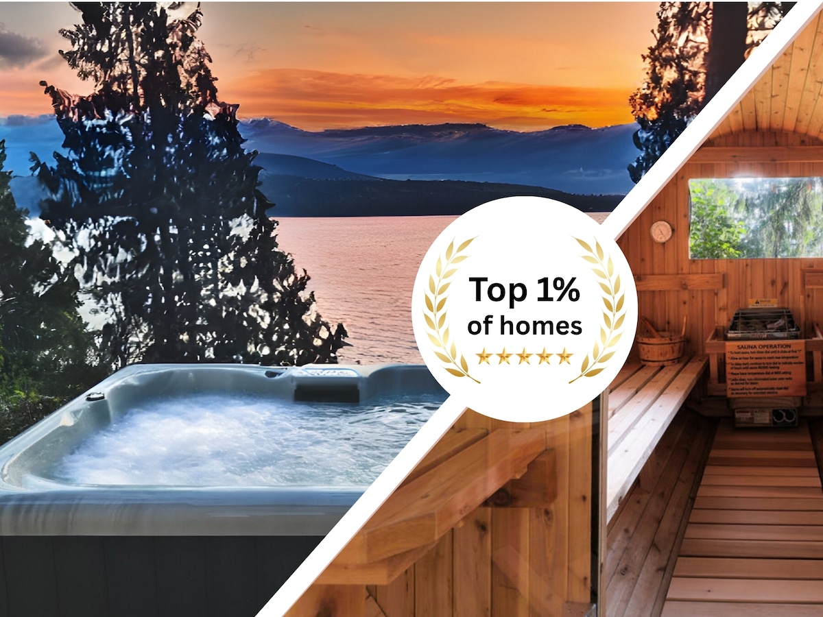 Această proprietate incredibilă pe malul înalt combină priveliștile panoramice izbitoare ale munților, oceanului și insulelor cu un interior modern și recent remodelat. Experimentează unele dintre cele mai bune apusuri de soare din viața ta de pe terasa exterioară mare, care include un grătar (mai-septembrie) și o zonă de luat masa în aer liber (groapa de foc nu este disponibilă în prezent). Bucură-te de sauna mare de 4 persoane, în sala de gimnastică de acasă, conceptul de etaj deschis, living confortabil și zonă TV, șemineu cu gaz din cărămidă albă și 3 spații de lucru dedicate, cu Wi-Fi de mare viteză.