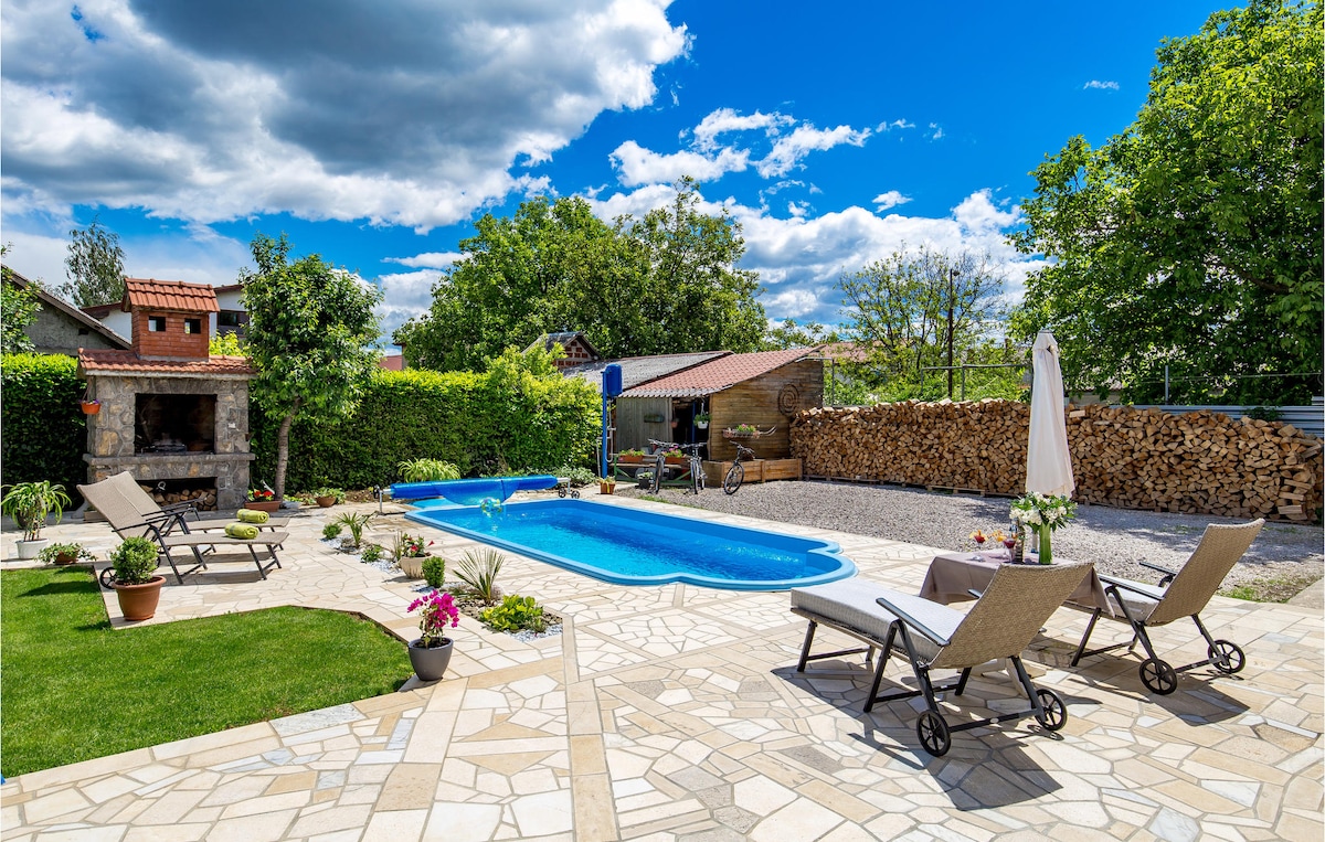 Casa de vacanta de lux cu piscină infinit nou este situat în satul din jurul orașului Rijeka. Doar 3 min de Automotodrom Grobnik,15 min de conducere de la Rijeka și 5 min de autostradă .Este casa intreaga - la etajul bazat este sala de sport cu toaletă și sala de jocuri cu billard, atunci există pod la primul și al doilea etaj, cu scări interioare din camera de zi vine la etajul al doilea, unde sunt 3 dormitoare și baie. La primul etaj se afla sufrageria,terasa,sufrageria si balconul, bucataria,baia.