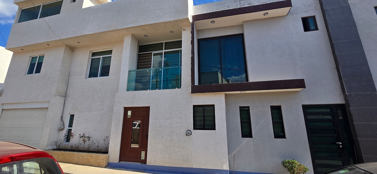 Bucură-te de un apartament modern în exclusivista colonie Lomas Santa Maria, Morelia. Are două camere (un pat matrimonial și două paturi de o persoană), trei băi și jumătate, bucătărie echipată cu aragaz, cafetieră și cuptor cu microunde. În plus, vei avea un garaj privat, mașină de spălat și uscător automat de rufe pentru confort. Situat într-o zonă liniștită, la doar 15 minute de centrul istoric. Aproape de spitale, școli și mall-uri. Ideal pentru familii sau grupuri care caută confort și stil.