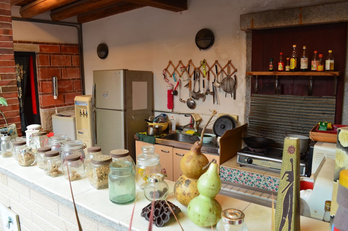Bine ai venit într-o cazare unică în mijlocul insulei Kinmen, această locuință găzduiește un singur grup de oaspeți pe zi, astfel încât să te poți bucura pe deplin de întregul spațiu. Cazarea noastră are un aspect rar al clădirii, este o formă timpurie de construcție a școlii private, cu două curți liniștite, astfel încât să puteți simți ritmul antic unic. Este la aproximativ 10 minute de mers cu mașina de toate atracțiile insulei, ceea ce îți face ușor să explorezi obiceiurile din Kinmen.Este la doar 5 minute de mers pe jos de cel mai apropiat magazin de proximitate pentru familii, cu confortul vieții. Oferim un spațiu confortabil pentru 8 persoane, inclusiv o cameră standard pentru 4 persoane, un apartament dublu standard, un apartament twin și un living spațios, astfel încât să te poți simți ca acasă în deplasare. Așteptăm cu nerăbdare să vă găzduim și să ne permitem să petrecem timp împreună pe acest pământ vechi și frumos.