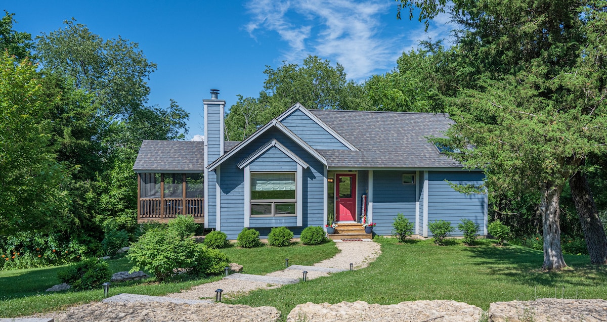 Relaxează-te la Rolling Hills Retreat, cu o cadă cu hidromasaj privată acoperită, două mese de foc, o terasă superioară imensă și o verandă ecranată, perfectă pentru a trăi în aer liber pe tot parcursul anului. Bucură-te de accesul la Clubul Proprietarilor cu piscine interioare/exterioare, pickleball, centru de fitness, port de agrement, drumeții și multe altele. Fiecare dormitor are o baie privată pentru confort și intimitate. Cadrul împădurit, liniștit, prietenos cu câinii, la doar câteva minute de Galena.