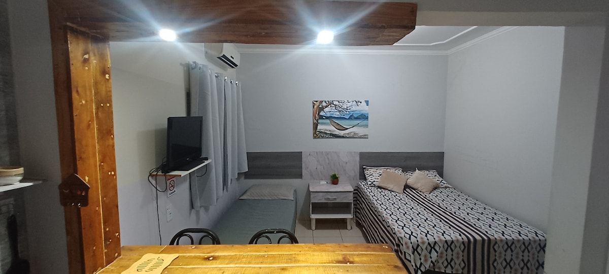 Abrace a simplicidade neste lugar tranquilo e bem localizado. Confortavelmente equipado para acomodar até 4 pessoas, com uma cama de casal e um bicama. Esse apartamento fica no segundo andar, acesso por escadas. Apartamento com ar condicionado. Obs: Estacionamento ao ar livre.