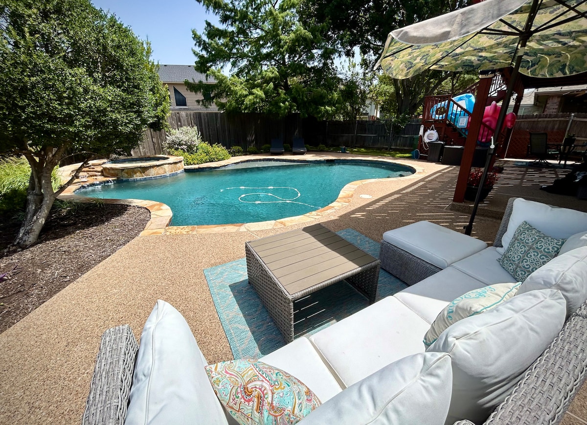 AVEM 2 CASE AIRBNB LA DOAR 1,6 mile distanță CASĂ PRIETENOASĂ CU COPIII • 5,9 km până la stadionul AT&T • 3,9 km până la Six Flags •. 4,5 km până la Globe Life • 4,5 mito EPIC •11,9 km până la aeroportul DFW *.12 mile până la lacul Joe Pool • 13,4 mile până în centrul orașului Dallas Această NOUĂ locuință remodelată de 2.400 mp, cu un singur etaj din Grand Prairie, se află pe un teren de colț de 0,5 acri și are 3 dormitoare, 2,5 băi și o curte privată împrejmuită cu o PISCINĂ ÎNCĂLZITĂ cu apă sărată,SPA, PLACĂ DE SCUFUNDĂRI,TOBOGAN